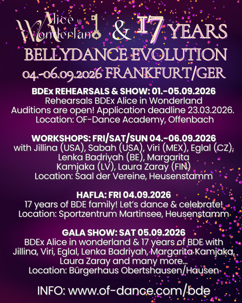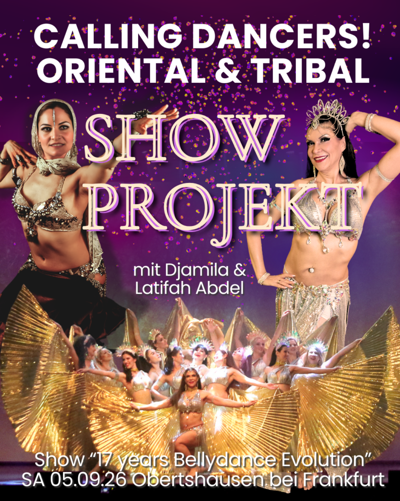 Im Rahmen der Jubiläumsshow „17 Jahre Bellydance Evolution“ wird ein ganz besonderes Projekt ins Leben gerufen – und DU kannst Teil davon sein. Als Eröffnung der Show erwartet dich eine einzigartige Gelegenheit: Du tanzt eine legendäre Original-Choreographie der Bellydance Superstars und wirst Teil eines unvergesslichen Bühnenmoments.
